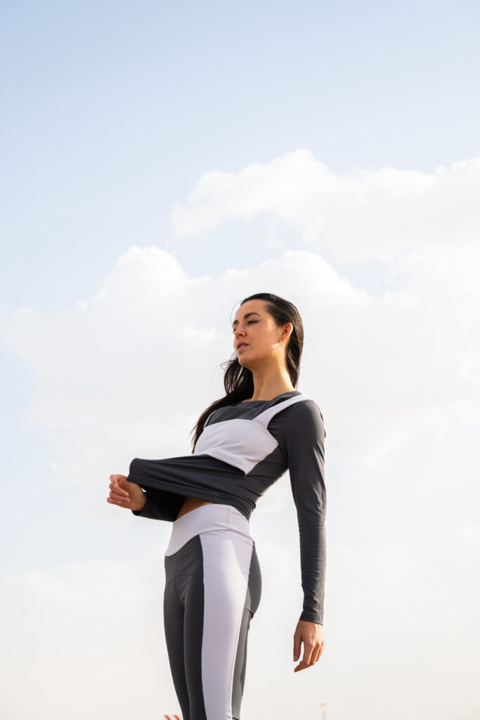 TechSuit™ is our ultra-lightweight performance nylon, designed for durability in the UAE’s heat and humidity. Engineered to provide full coverage while remaining breathable, this fabric protects against elements without feeling heavy or restrictive. Its relaxed structure allows for unrestricted movement, making it ideal for travel, errands, and transitioning from studio to street.