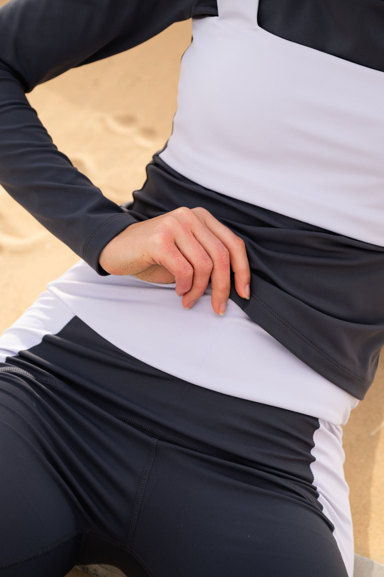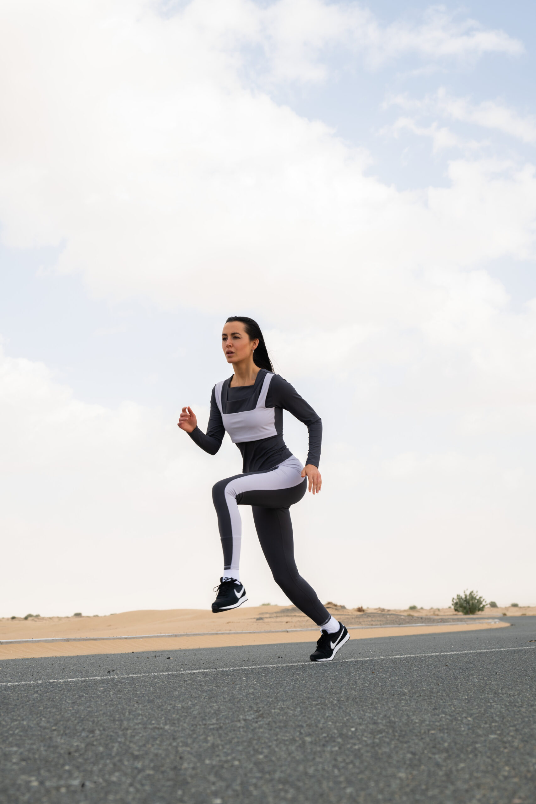 This set gives your body shape but with the elegance including full length coverage for modesty. Double layered breathable and lightweight to move with you, and a contouring effect. To be worth from studio to street.